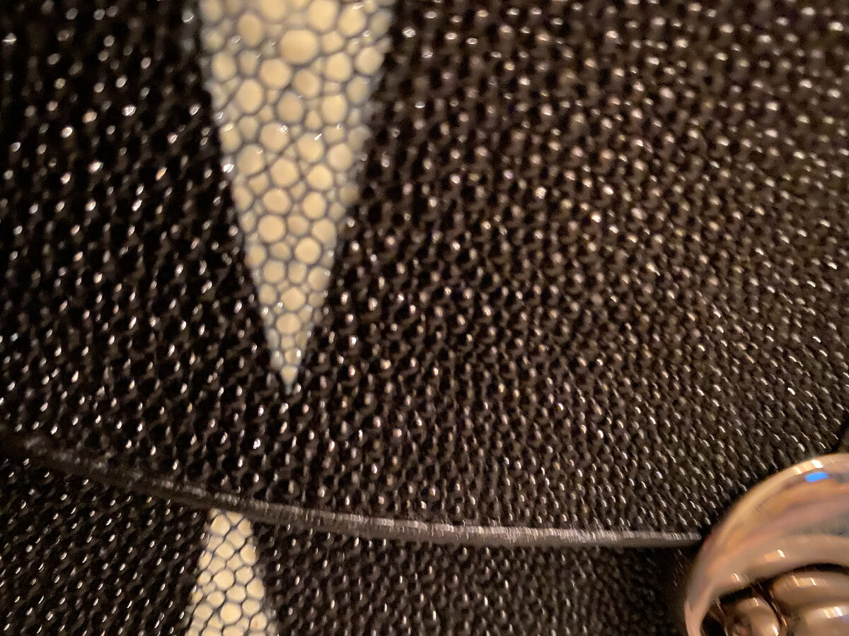 Особенно прекрасны сумки из галюши в движении - зернистая поверхность мягко мерцает, как черная икра, или черные бриллианты. Они самодостаточны, поэтому чаще используются для вечерних или торжественных выходов, предпочитая простые лаконичные модели. Из галюши шьют и обувь, но, честно говоря, смотрится это не так изысканно. Галюша - это специальным образом выделанная кожа ската, она очень плотная и зернистая. Интересно, что изначально галюшу использовали для обивки саквояжей - дорожных сумок, и украшения всяких будуарных мелочей: шкатулки, щетки для волос, табакерки, баночки для косметики, футляры для очков, зеркальца, фурнитура и прочее, а затем, научившись делать кожу более мягкой, и обувь, чаще мужские ботинки, ремни, ножны, браслеты. Сегодня скатов часто разводят, как и других рыб - в садках. Например, в азиатских странах, где мясо скатов, особенно так называемые крылья, еще и едят (и это вкусно даже для европейца), а кожу поставляют производителям сумок и обуви, поэтому галюша се