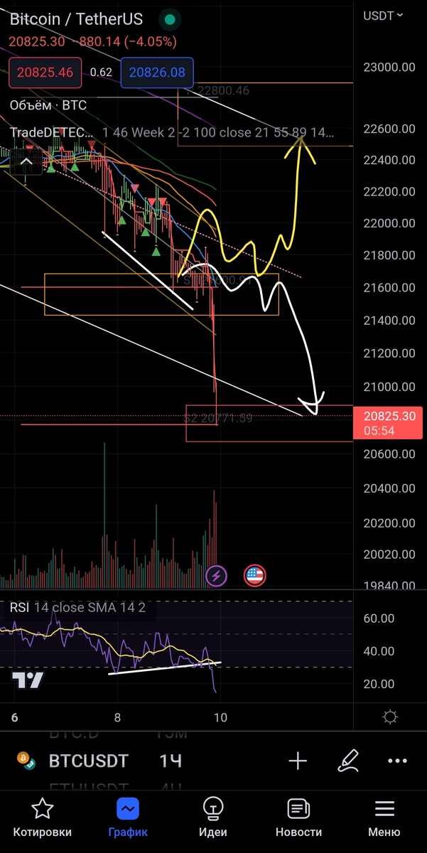 Идеальное касание уровня, который построил индикатор в понедельник. Всё было ожидаемо с той или иной вероятностью.