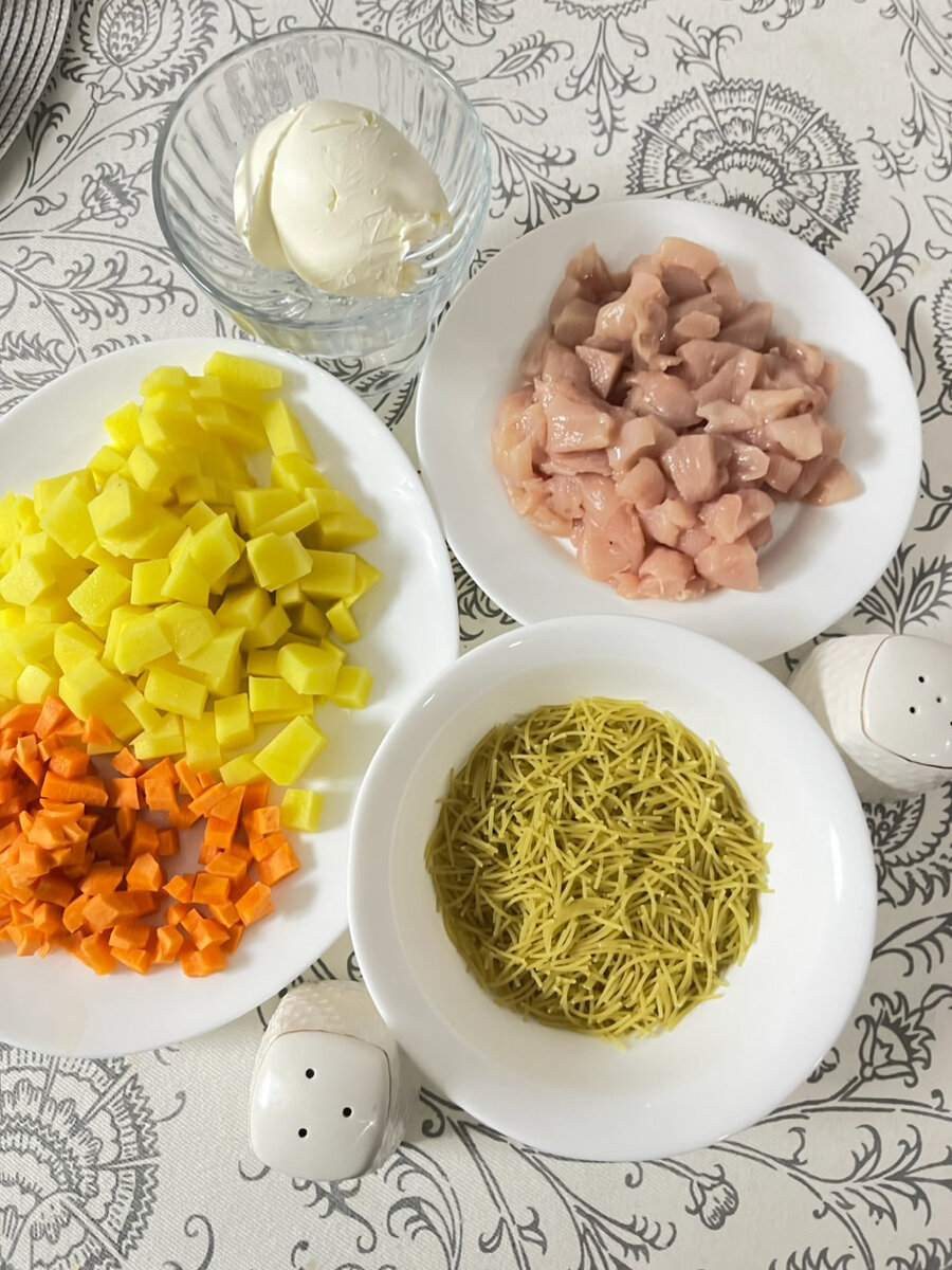 - затем добавляем вермишель и плавленный сыр и приправы по вкусу.