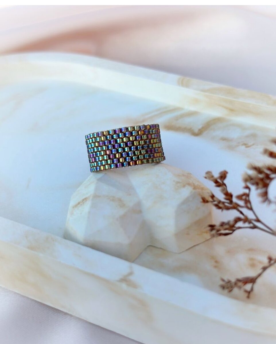 Получила в подарок карту Леонардо и отправилась тратить))) У меня новый проект. Решила заняться бижутерией. Сделаю себе несколько колечек из бисера. Говорят, сейчас это модно. Вот такого типа: К сожалению, японская Миюки Делика не продается в Леонардо. Только Тохо. 15 размер очень мелкий. Но я же не на поток ставлю, делаю для себя. И вот результат моего похода: В верхнем ряду 6 пакетиков - это Чешский бисер, в нижнем Японский Тохо. На вид весь бисер одинаковый , и только опытный глаз отметит более точную калибровку и размер. Поэтому Японский бисер в 5 раз дороже чеха!!! Взяла еще набор бисерных иголочек - некоторые кольца плетутся на двух иглах. Всего вот за это небольшую кучку бисера отдала 1000 рублей. Очень долго стояла перед наборами доя вышивания бисером, но на душу ничего не легло. Последний раз вышивала лет 7 назад. С тех пор зрение не позволяет. Поэтому, хорошо, что не соблазнилась... Кстати, по поводу цен в Леонардо. Такой же бисер на ВБ стоит столько же. Но в Леонардо его