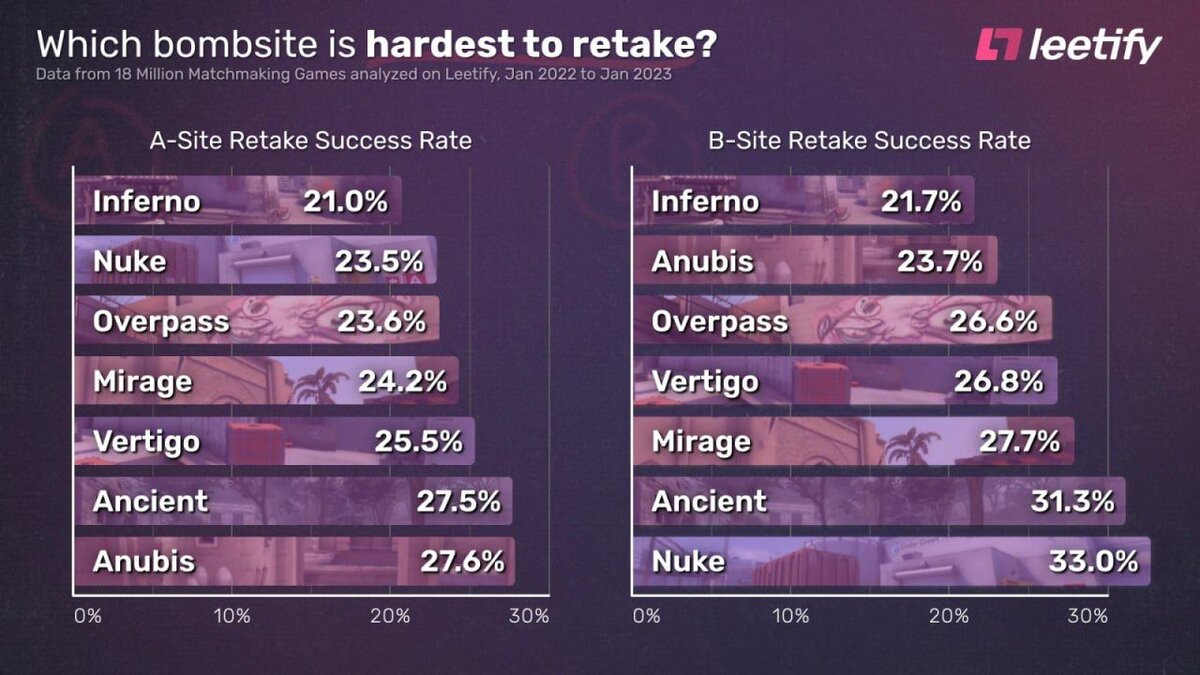 A и B на всех картах соревновательного маппула. Наиболее сложным для ретейка является плэнт A на карте