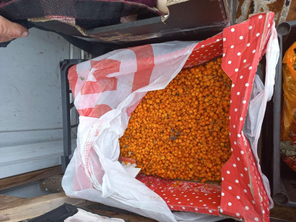 Собирает зимой ягоды. Все его лесные добычи на фото. Облепиха. Летом приглядывает где есть ягоды. Зимой собирает. Я даже не знала, что можно зимой собирать. Думала собирают осенью. А он уже мороженную собирает в зимнее время. Шиповник собирает осенью. Рябину с деревьев зимой.