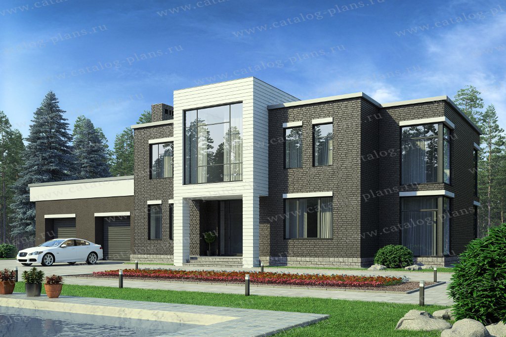 Панорамные окна делают внешний облик дома более строгим и легким. К тому же за счет просторных окон дневной свет беспрепятственно проникает во внутренние пространства дома. В доме предусмотрено два гаража, а значит, вопрос с парковкой двух автомобилей можно считать решенным.