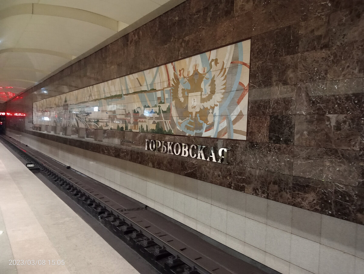 Главная пешеходная улица в Нижнем Новгороде улица Большая Покровская, она пешеходная , чём-то похожа на Старый Арбат в Москве и улицу Баумана в Казани, на ней расположено большое количество различных магазинов, кафе, музеев, играют уличные музыканты, продают много разных сувениров. Наш город разделён на две части заречную и нагорную, центральная улица находится в Нагорной, проще всего сейчас туда добираться на метро. Метро в Нижнем Новгороде не очень протяжённые в Нагорной части всего одна станция Горьковская, зато пешеходная зона улицы Большая Покровская в шаговой доступности. Так выглядит станция метро. Много людей приехало, на эту станцию всегда много народу приезжает и уезжает, особенно в часы пик. Барельеф Максима Горького на одноимённой станции. Выходим из метро проходим одноимённую площадь и попадаем на Большую Покровскую. В начале нас встречает памятник почтальону, его нарядили в майку букмекерской конторы Пари НН, спонсора спортивных команд Нижнего Новгорода. Улица Бол