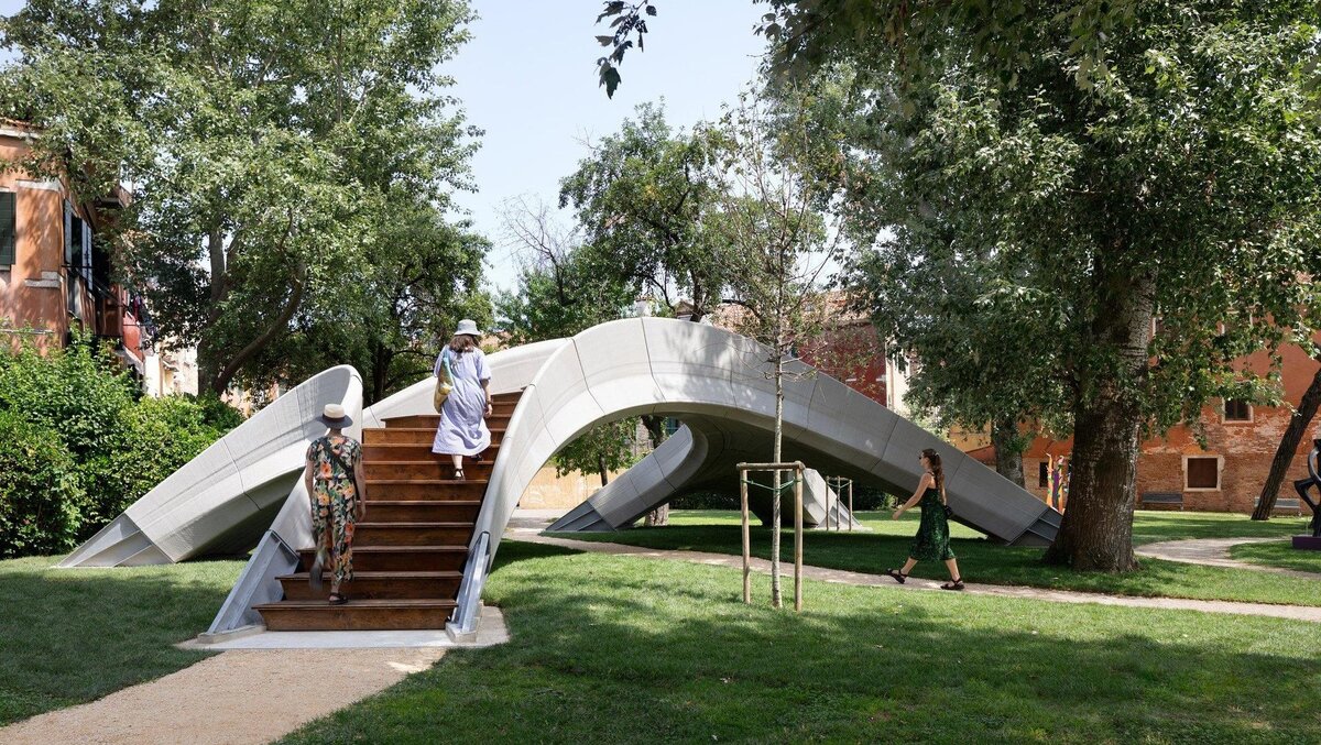 Бетонные детали для этого моста студия Zaha Hadid Architects напечатала с помощью 3D-принтера, сэкономив время и материалы. Он сложен всухую и легко разбирается для переработки или повторного использования Этот необычный пешеходный мост появился недавно в садах Giardini. Его спроектировали специалисты группы Block при Швейцарском университете ETH в Цюрихе и студия Zaha Hadid Architects (ZHA CODE) в сотрудничестве с экспертами по 3D-печати бетона из фирмы incremental3D. Он построен с использованием исторических методов кладки и современных технологий, объясняет заместитель главы студии Zaha Hadid Architects Шаджай Бхушан (Shajay Bhooshan). Striatus — это отдельно стоящий пешеходный мост, который демонстрирует возможности 3D-печати для строительства с меньшими затратами материалов. «Соединив давние традиции каменного строительства с современными технологиями проектирования и 3D-печатью по бетону, мы можем проложить путь к устойчивому использованию материалов», — отмечают представители Za