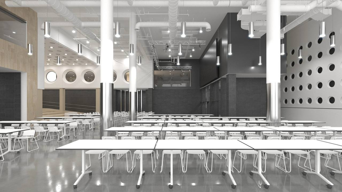 Здание общей площадью более 17 тыс. кв. метров объединит школу на 800 учеников и детский сад на 150 малышей. Внутреннее пространство школы напоминает горный массив с площадками и перепадами высот, где передвижение по этажам станет небольшим приключением. Входя в школу, ученики попадают на уровень второго этажа – в атриум, где можно смотреть кино, проводить концерты и собрания. К атриуму примыкает столовая, где в любое время можно посидеть с друзьями, сделать уроки или обсудить проект. Рядом с центральной зоной по принципу конструктора расположены остальные модули школы. НАУЧНЫЙ МОДУЛЬ