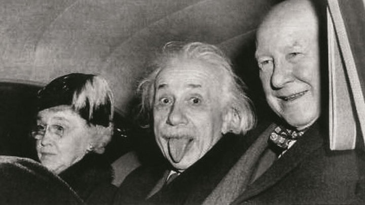 Этот забавный кадр появился тогда, когда фотограф Артур Сасс попросил великого именинника Альберта, справлявшего своё 72 летие улыбнуться. Но Эйнштейн так сильно уставший в этот день от светских мероприятий, высунул просто язык. Он был уверен, что камере не хватит скорости затвора, чтобы успеть сделать кадр. Но у фотографа был самый передовой на тот момент аппарат, поэтому снимок был сделан и в последствии обрёл огромную популярность.