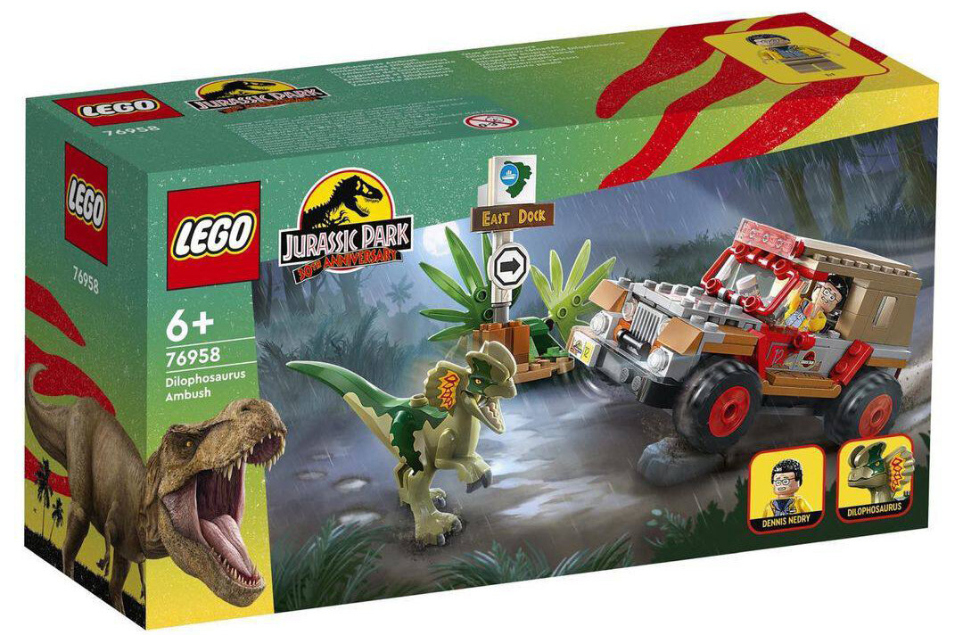В этом году исполняется 30 лет первой части легендарной франшизы о гигантских (и не очень) ящерах. Подумать только как летит время! В честь этого Лего собираются выпустить целую линейку наборов, которые мы сегодня и сравним с оригинальным фильмом. Засада Дилофозавра Самый маленький набор из 221 детали за $20. А вот сцена, конечно, культовая. Карма настигает предателя! Сравним с фильмом: Машина похожа, моё почтение. Персонаж - тоже неплох, хотя, конечно, Лего никак не передаёт его полноватость. А вот у дилофозавра "юбка" вокруг шеи могла бы быть и пошире. Из приятных мелочей: небольшая постройка со знаком направления к причалу (выглядит точно так же, как в фильме!), контейнер с эмбрионами в руках Дэниса. Ну и, конечно, второе выражение лица у минифигурки "забрызгано" ядом динозавра. Моё резюме: приятный небольшой наборчик. Вполне хорош за свои деньги. Побег Велоцираптора Парадокс: набор стоит дороже ($35), а деталей намного меньше (137). Зато внутри целых две минифигурки с главными пер