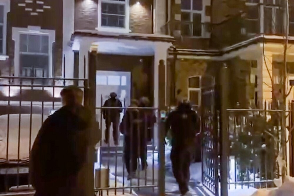 Сотрудники правоохранительных органов заходят в дом семьи Чекалиных, которых обвиняют в неуплате налогов в особо крупных размерах. Фото: Следственный комитет РФ / ТАСС