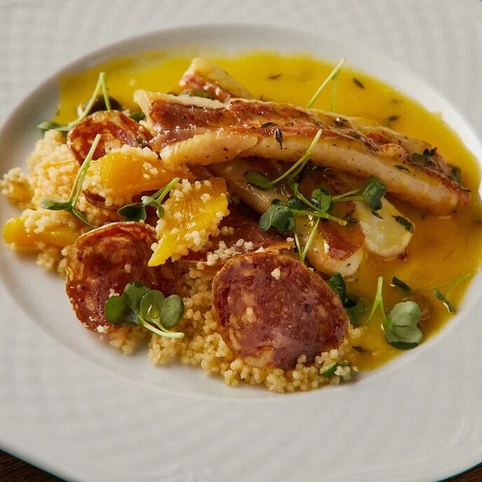 Пока ТикТокеры пытаются по-новому раскрыть вкус Pepsi и молока (*Pilk = Pepsi + milk ), мы задумались, а не пора ли нам раскрыть вкус белой рыбы в необычном эксперименте с пикантной колбаской чоризо. Конечно, пора! Для начала вспомним, что мы знаем о фудпейринге? Это концепция подбора ингредиентов для блюд, в которых нет правила «так можно, а так нельзя». В одной тарелке могут встретиться несочетаемые на первый взгляд вкусы рыбы и мяса. Но самый классный бонус фудпейринга - это возможность взглянуть на свои пищевые привычки по-новому! Сегодня все на нашем столе будет крутиться и вертеться вокруг морского окуня, представителя белой рыбы и чоризо - пикантной свиной колбаски. Белая рыба и фудпейринг Белая рыба обладает менее выраженными вкусовыми характеристиками чем красная, и в этом ее огромный плюс. Спаржа, цветная капуста, шпинат, базилик – это лишь стартовая точка для кулинарных экспериментов с разными видами белой рыбы. Что вы скажете о таком сочетание как треска + томаты + клубник