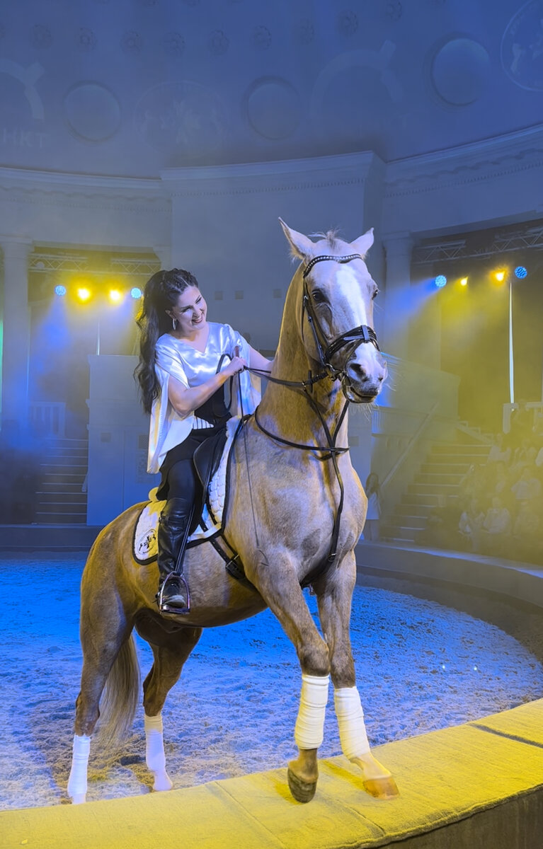 Лошади вместе со своими дрессировщиками устроили настоящее шоу, исполняя синхронные пируэты, двигались галопом по кругу, приветствовали гостей копытами, кланялись в реверансах, делали сложные перестроения, несомненно, восхищая и завораживая зрителей. На сегодняшний день лошади Конного театра являются одной из самых больших групп лошадей, работающих в жанре дрессуры и показательных выступлениях. После такого теплого приема в манеже сотрудники ВДНХ с хорошим настроением, улыбками и