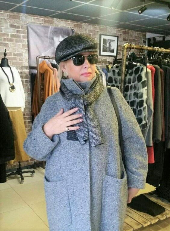 После 60 женщинам важно выглядеть в ногу со временем, но при этом не переборщить в стремлении использовать тренды. Поскольку не все направления моды можно и нужно включать в свой гардероб. Не стоит забывать и об удобстве. Мало кто из зрелых женщин согласится терпеть дискомфорт ради того, чтобы выглядеть модно. Несколько вариантов образов – удобных, современных и симпатичных 1. Образ в сером тоже может быть выразительно. Посмотрите, как смотрится ансамбль со светло-серым пальто. А ведь ничего сложного. Актуальная модель пальто с большими накладными карманами, стильная кепка из драпа и шарф с фактурным узором «елочка». 2. Еще один вариант комплекта с преобладанием серого цвета, но на этот раз в ансамбль добавлен нежно-розовый. Комплект состоит из серых брюк со свободной посадкой сверху и с сужающимися книзу штанинами, светло-розового джемпера и стильного полупальто мышиного оттенка. К ансамблю подобрали ботинки с элементами с эффектом металлик, а также необычное украшение на шнурке. 3. В