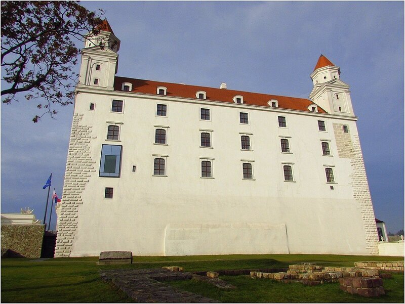Основной пункт туристической программы в Братиславе, конечно, замок- Братиславский град. Это не Пражский Град и даже не замок Крумлова, это та достопримечательность, когда себя уговариваешь- ну отметились же, надо же посмотреть, мы же туристы. Но и не увидели бы- обошлись))) по крайней мере у меня так. Но это было очень приятно- прогуливаться по парку, по осенней листве, небо синее, внизу Дунай. В 1961 году Братиславский Град был включен в список национальных памятников культуры под номером 1 и считается главной достопримечательностью Словакии. Его нынешний облик сложился в 1427 году и когда то здесь кипели военные сражения. С конца 18 века замок пришел в упадок, а в 1811 году его и вообще сожгли пьяные солдаты. И на 150 лет о замке вообще забыли, пока власти Чехословакии с 1953 по 1968 годы не произвели масштабную реконструкцию. В 2010 году на площади у замка поставили памятник Князю Святополку, который правил этими землями с 871 по 894 годы, княжество