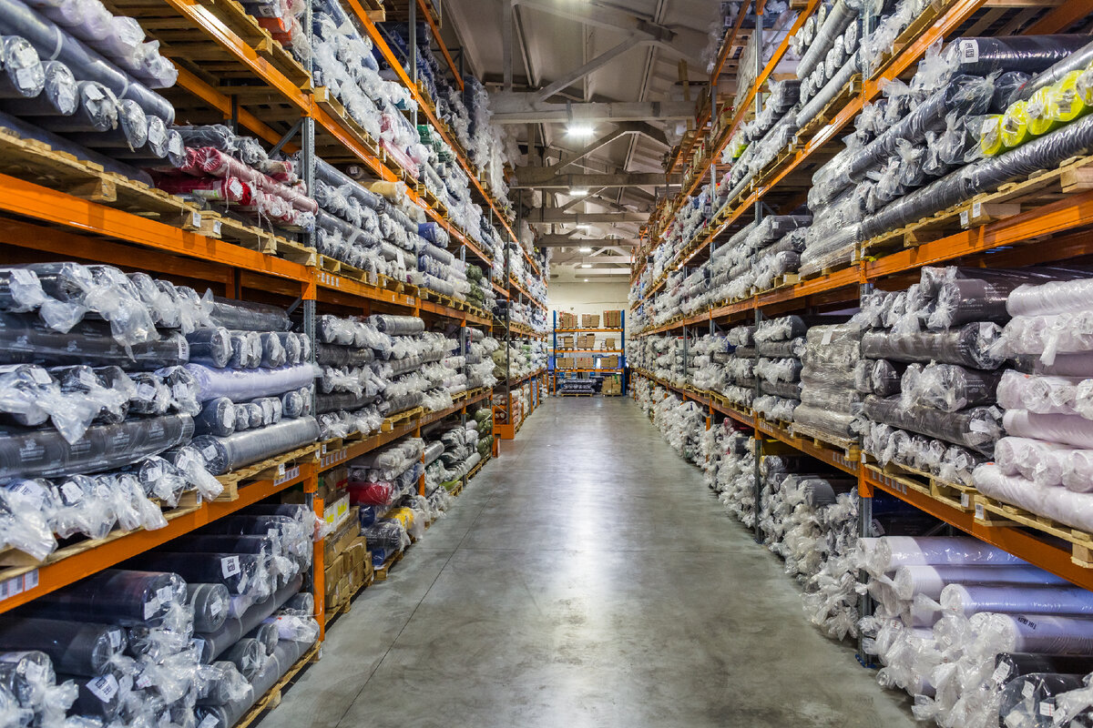 СКЛАД ВХОДЯЩЕЙ ПРОДУКЦИИ На любом предприятии существует всегда два склада: входящей и исходящей (готовой) продукции. Первая точка посещения - склад входящей продукции. Т.е. Все что должно будет проходить какую-либо доработку на производстве - приходит сюда. Как многие знают, или догадываются, производство перерабатывает ткани из различного «состояния». Самая длинная цепочка - когда приходит пряжа, условно говоря нитки, после чего начинается процесс ткачества и дальнейшие переработки. Здесь в основном хранятся ткани - суровые или крашеные основы. Маленькие рулоны - синтетический ассортимент нашего партнера Сoncordia (курточные ткани) - полиэфиры, полиамиды. Большие рулоны - ассортимент огнезащитных тканей партнера Carrington. Почему такое разделение? Все эти ткани импортно-закупные, соответственно их необходимо транспортировать. Курточный ассортимент, это ткани в основном легкой и средней плотностью - от 70 до 200 г/м2 максимум. Если мы говорим о защитных тканях, то самое минимально
