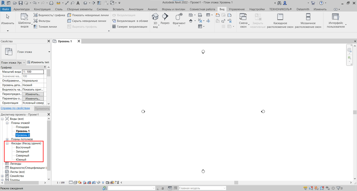 Сейчас пошагово рассмотрим как добавлять уровни в проект в Revit 1. В диспетчере проекта левой кнопкой мыши раскрываем фасады и выбираем любой двойным нажатием левой кнопки мыши. 2. Перейдя на фасад, подсвечиваем уровень, который выше всех расположен (в моем случае - подсвечиваем 2 уровень). После этого, на верхней панели находим инструмент - копировать и нажимаем на него. 3. После нажатие на инструмент копировать, мы наводим на самый верхний уровень (у меня это уровень 2) и нажимаем на него, далее, ведем вверх, откладывая ту высоту, которая нужна. 4. После того, как мы скопировали уровень, нам нужно его активировать (чтобы в дальнейшем он везде отображался). На верхней панели мы переходим на вкладку вид. 5. На вкладке вид мы находим виды в плане и раскрываем их. 6. После раскрытия виды в плане, мы нажимаем на план этажа. 7. Когда мы перешли в диалоговое окно, мы выбираем из списка нужные нам уровни, подсвечиваем их и нажимаем ок. После данных действий нужный Вам уровень станет активны