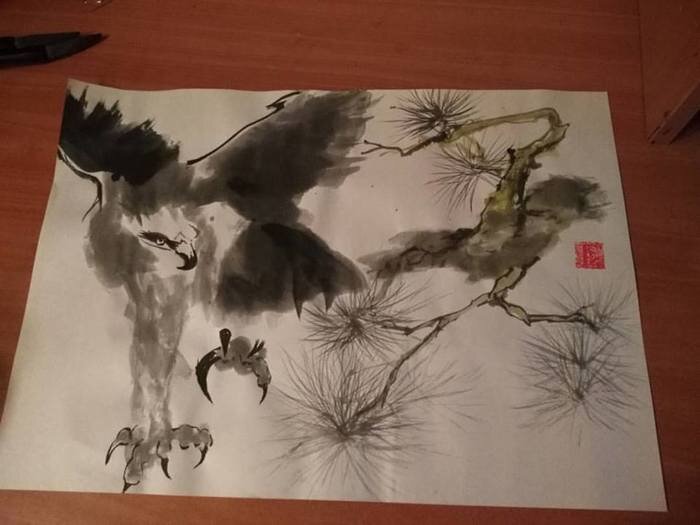Если говорить о сюжетах китайской живописи, то мне по духу пришлись «горы и водопады» - так поэтично переводится с китайского слово «пейзаж», в котором я на этапе ученичества пытаюсь повторять древние свитки. Еще мне понравились «четверо благородных», так называют бамбук, сливу мейхуа (символ стиля вин-чунь), орхидею и хризантему. Но вот хризантема совсем «не моё». А в первых трех сюжетах стараюсь практиковаться чаще. Вот что еще хотелось добавить, что нравится мне «техничность» китайской живописи. Если в живописи маслом можно исправить мазок, то вот тут сложность в сделанном правильно движении. Чтобы энергия ци перетекала через кисть на бумагу и оживляла рисунок.