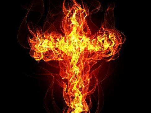 Сквозь языки пламени он видел сердитого старика и силуэт горящего креста в отражениях темных окон.