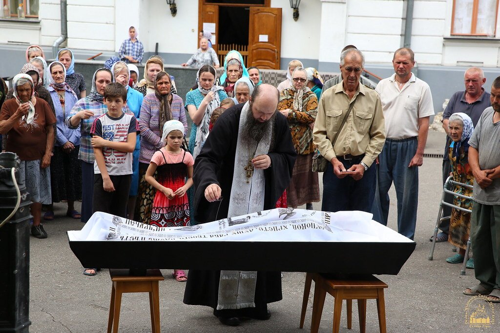 25 августа, в день памяти мучеников Фотия и Аникиты, в гостиничном корпусе № 9 скончалась на 92 году жизни Ковалевская Нина Ивановна, жительница села Студенок Изюмского района Харьковской области. В Святогорскую Лавру она была доставлена 18 мая 2022 г. сотрудниками Государственной службы Украины по чрезвычайным ситуациям из села Студенок в числе других больных и немощных престарелых людей, которых в условиях активных военных действий некуда было везти кроме как в Святогорскую обитель. Дальнейший уход и содержание бабушек легло на служителей лаврской гостиницы и её коменданта, архимандрита Мефодия (Лукашова), который совершил 26 августа отпевание новопреставленной рабы Божьей Нины. Чин погребения был совершён в одном из помещений гостиничного корпуса № 9 в присутствии сына Нины Ивановны — Геннадия Ковалевского. Он же сообщил, что Нина Бурлака (в замужестве Ковалевская) родилась 22 июля 1931 г. в с. Яремовка Изюмского района Харьковской области. С 1949 г. проживала в Студе
