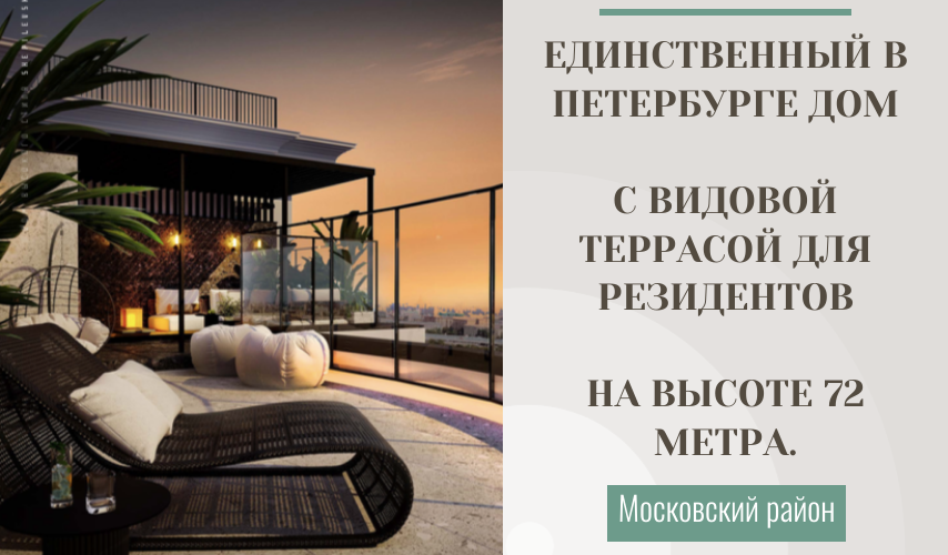 ЕДИНСТВЕННЫЙ В ПЕТЕРБУРГЕ ДОМ С ВИДОВОЙ ТЕРРАСОЙ ДЛЯ РЕЗИДЕНТОВ НА ВЫСОТЕ 72 МЕТРА.