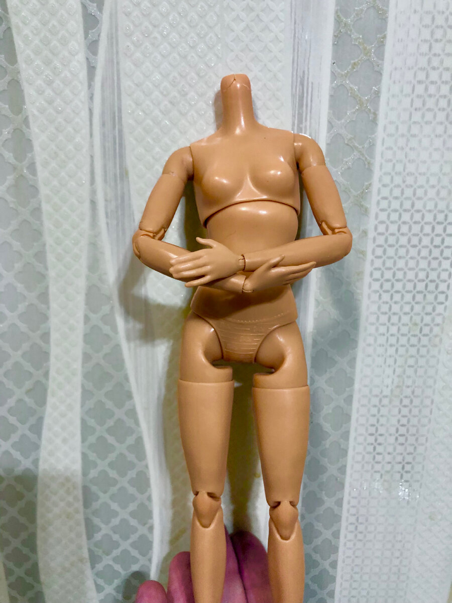 Сегодня ко мне с авито пришло можно сказать безнадежное тело: Отсутствует шарнир, очень сильные сколы. С другой стороны так же отсутствует кусок. Можно «лечить» с использованием таблетки, это дело возможностей и привычки каждого, однако я предпочитаю покупать дешевых кукол-доноров на просторах авито. С тела, представленного ниже, уже сняты кисти и голова 🙈🙈🙈 Тоже самое проделываем с телом, подлежащем ремонту. Окунаем в кипяток. Далее вставляем извлечённый от донора якорь. Благодаря отломанным кускам якорь входит легко. Таким образом я тру о пилочку для ногтей разные оттенки пастели, подбирая более менее подходящий оттенок. Далее на пастельную пыль я капаю каплю клея, замешиваю иголочкой и начинаю послойно наносить на трещину. В микро трещины я втираю клей резиновыми перчатками. После высыхания нарощенный кусок выглядит примерно вот так. Вид с обратной стороны. Вид спереди . Кукла целиком . Из нюансов: бугры клея я подпиливала пилочкой с мелким зерном. А также немного сузила
