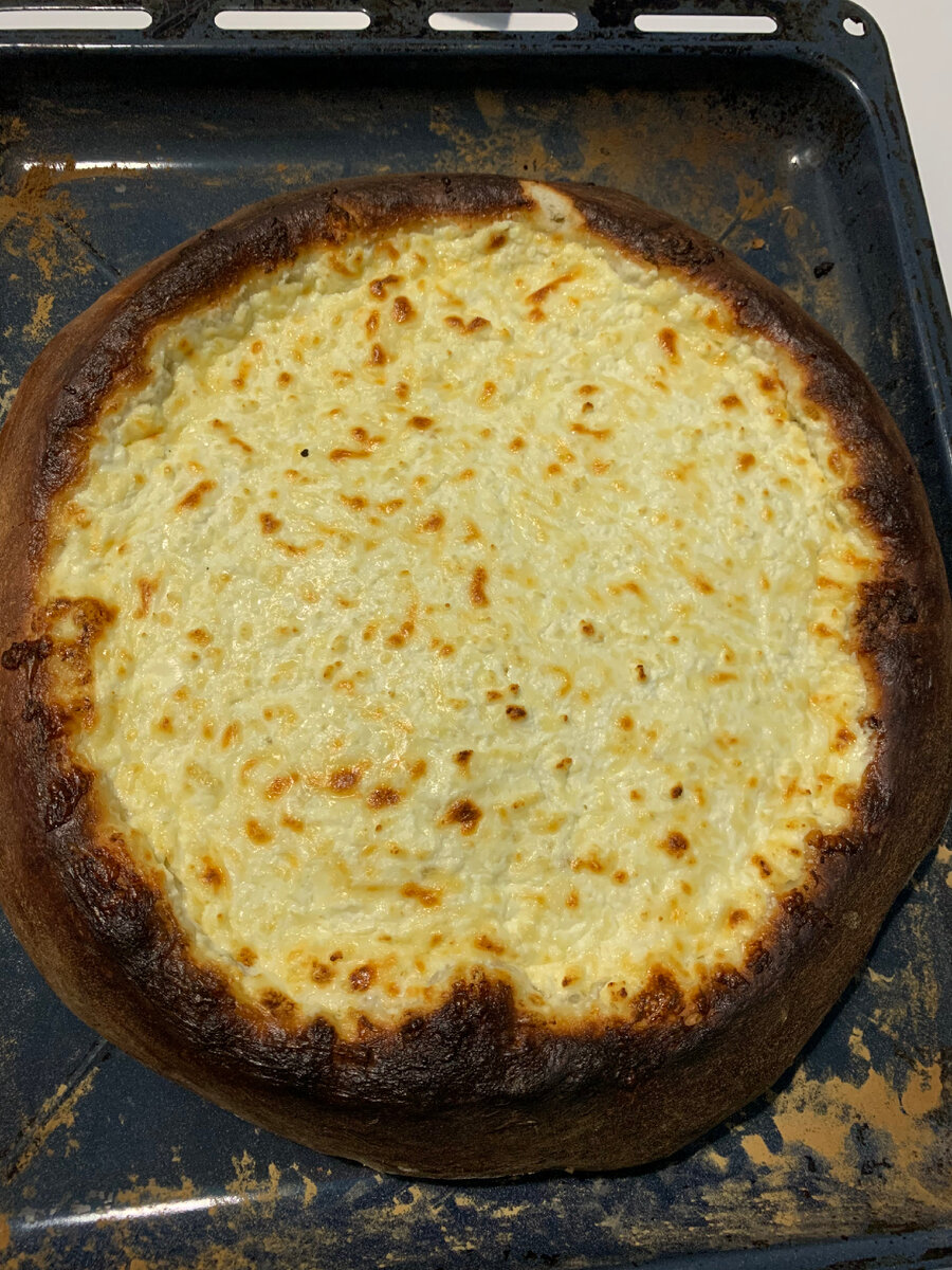 Для этой Мега-Пицца-Ватрушки нам понадобится: Поехали! Раскатываем тесто как на пиццу, делаем бортики (чтобы лучше получалось раскатывать, надо смазать руки маслом). Подсыпаем противень мукой и перекладываем наше тесто на противень. Натираем сыр, перекладываем все ингредиенты для начинки в емкость и очень тщательно перемешиваем! Распределяем всю начинку на тесто В заранее разогретую духовку (250 градусов) ставим нашу пиццу на 9 - 10 минут. Приятного аппетита