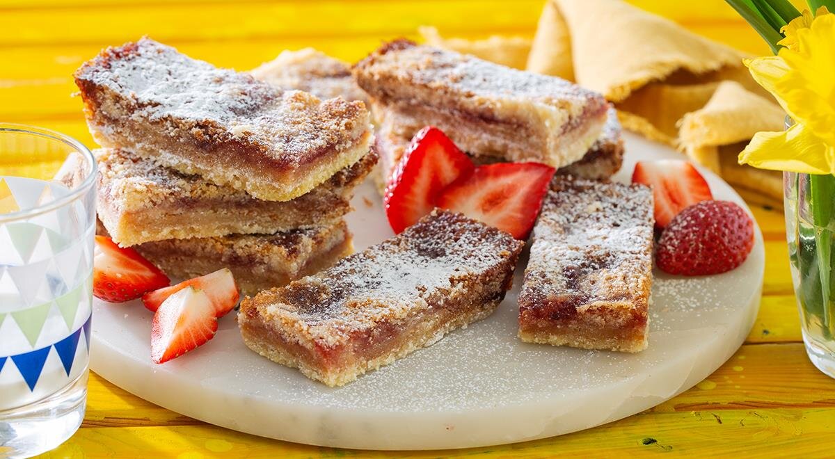 Насыпной пирог Три стакана с вареньем - отличное решение для тех, у кого дома до сих пор нет кухонных весов