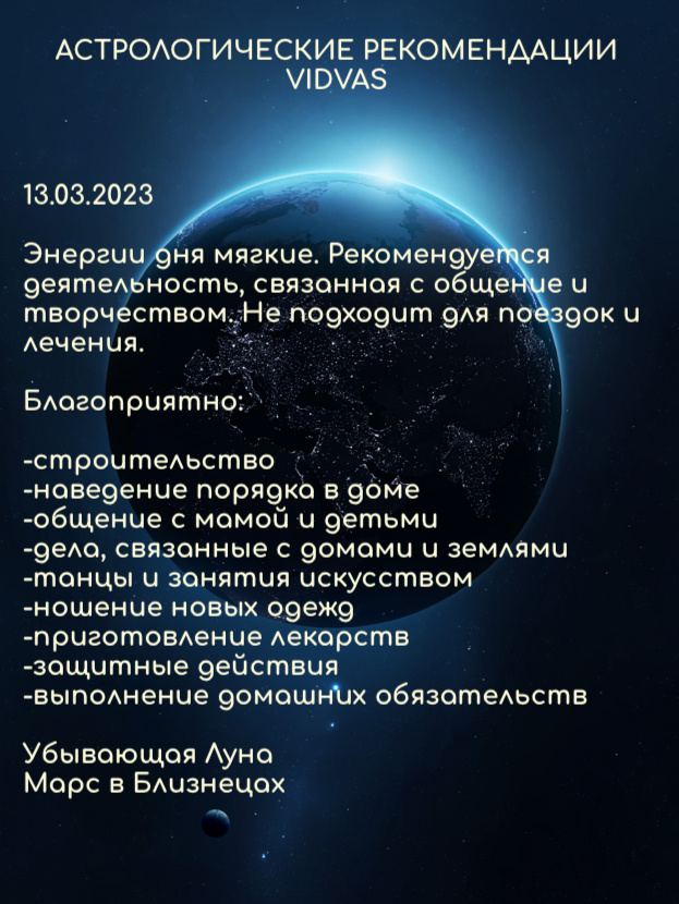 Энергии дня мягкие. Рекомендуется деятельность, связанная с общение и творчеством. Не подходит для поездок и лечения.