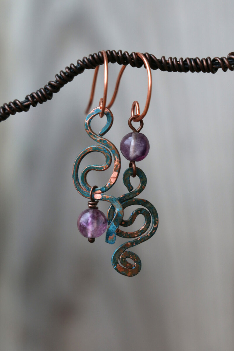 Материалы: медь, флюориты. Автор:Христинич Елена ***** Этим серьгам идеально подошло бы название "Райские яблочки" -