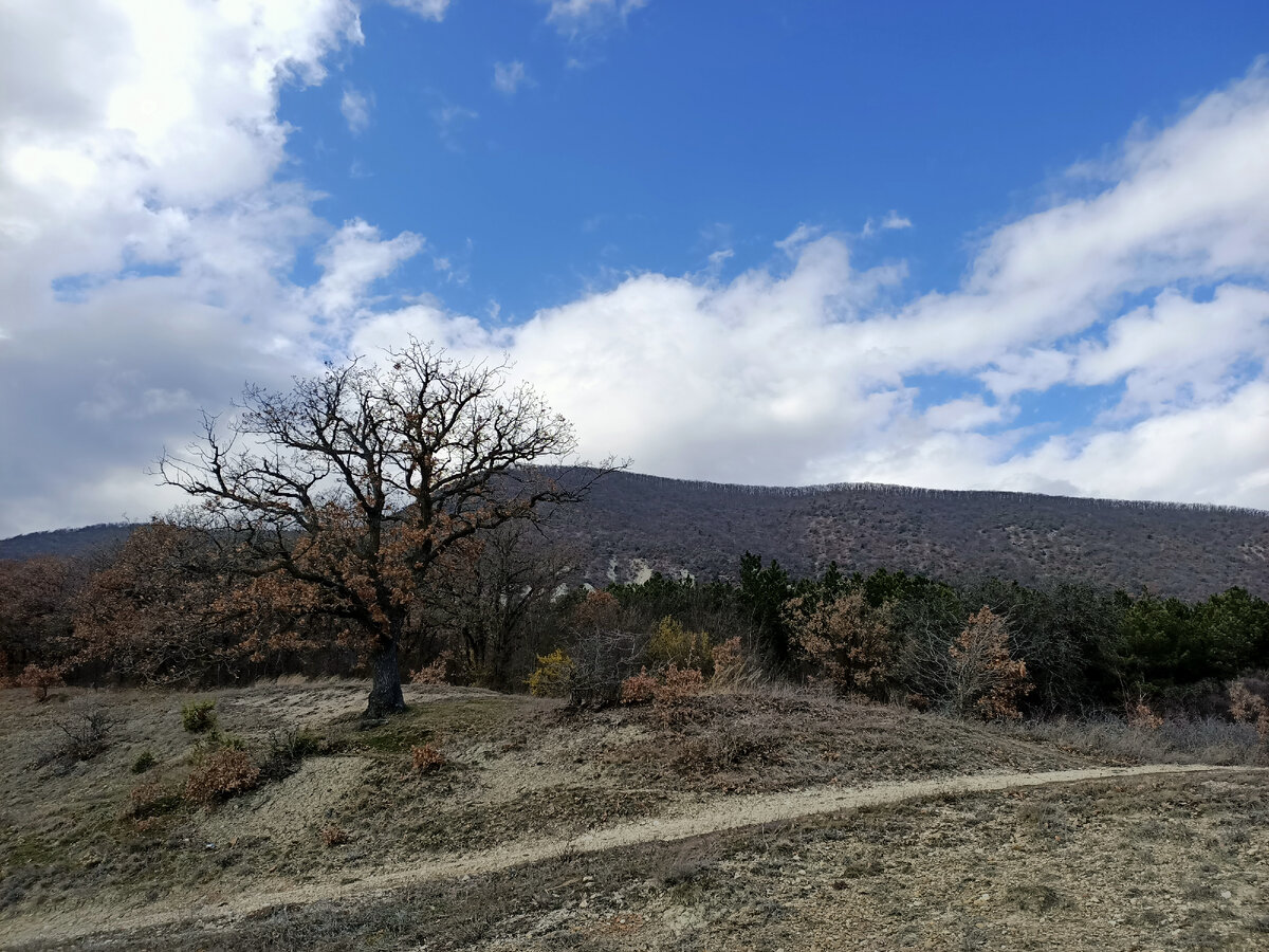 Цикламен - растение редкое, интересное, нежное и встречается только в некоторых местах в Крыму. Время его цветения тоже очень короткое - когда сошёл снег, но ещё не высохла земля! Увидеть как цветёт это маленький фиолетовый цветочек удаётся не всегда! В прошлом году я поехал на Кубалач немного раньше, 28 февраля, день был откровенно холодным, у подножия горы было +2, а в горах даже морозно, веточки деревьев были покрыты тонким слоем льда, цветочки подснежников и цикламенов тоже были ледяными. Об этом походе рассказ здесь: А в этом году 8 марта было почти жарко, Крым преподнёс женщинам подарок в виде тёплого солнечного дня! + 16! В этот день я опять собрался поехать посмотреть на самый редкий весенний цветок. Но если в прошлом году я поехал в село Мелехово, где начал подъём на гору Аюлу-Кая, то в этом году путешествие на Кубалач началось из села Тополевка. Машину поставил прямо на берегу небольшого озера откуда открывался волшебный вид на Свято-Троице-Параскевиевский Топловский женский