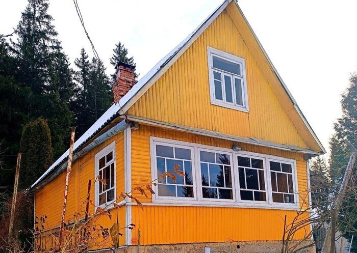 На продажу здесь выставили деревянный дом, обшитый сайдингом. В нем две жилые комнаты, кухня и веранда.