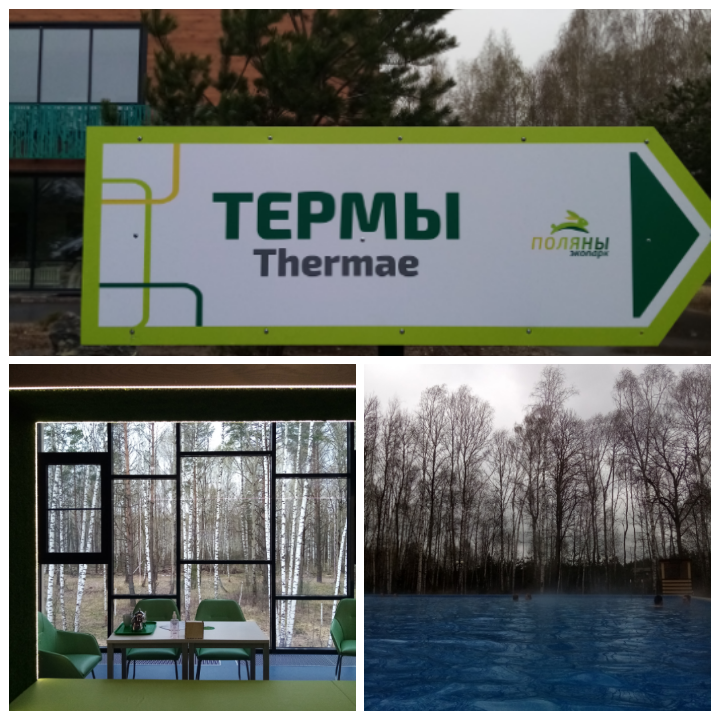 Термы находятся в 30 км от Рязани , в экопарке Поляны . Это отличное место для отдыха души и тела , расположено в лесу , вдали от городской суеты . Помимо оздоровительного комплекса на территории Экопарка есть гостиница с уютными номерами и гостевые домики для отдыха в компании друзей . Термальный бассейн под открытым небом , с температурой воды + 32 градуса . Это просто волшебно , плавать в бассейне , наслаждаться красотой леса и дышать свежим воздухом . В определенные дни проходят занятия аквааэробикой . В оздоровительном комплексе расположены бани Хамам - турецкая баня . Температура 40-45 градусов и влажность 90 % . Красивая подсветка , полумрак и мраморная отделка . Кедровая сауна Температура до 70 градусов , влажность до 40 % , кедр является природным антисептиком и моментально уничтожает микробы и бактерии вызывающие вирусы и болезни . Соляная Температура до 60 градусов , влажность до 30 % . Здесь с удовольствием сидят даже дети , полезно и комфо