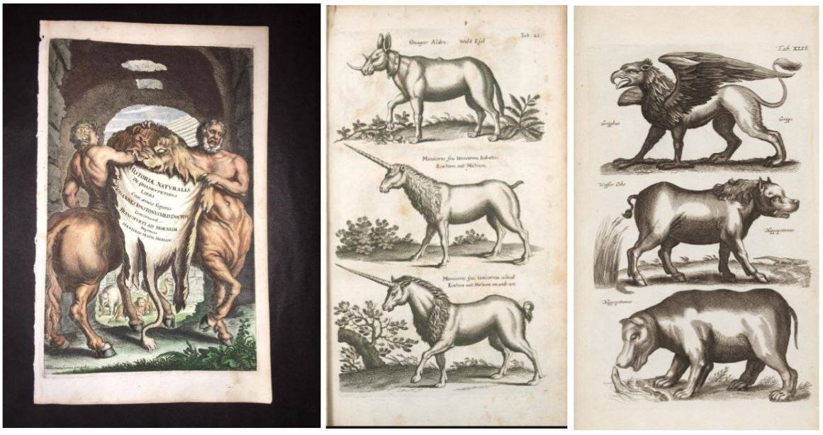 В книге ученного-ботаника Яна Йонстона «Описание чудес природы. Удивительные животные» помимо привычных домашних животных встречаются мифические животные.