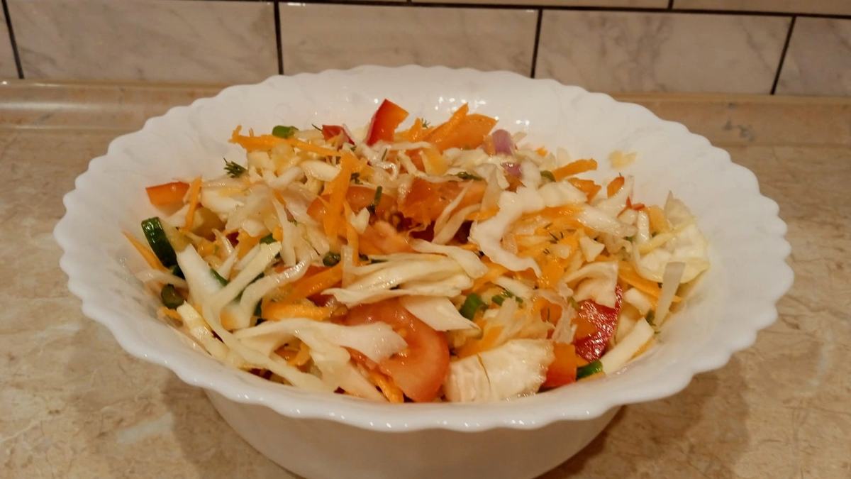 - С ингредиентами можно экспериментировать по Вашему желанию каждый раз получая новый по вкусовым ощущениям салат ( даже сочетание: капуста-морковка-лук-сок лимона, будет замечательно).