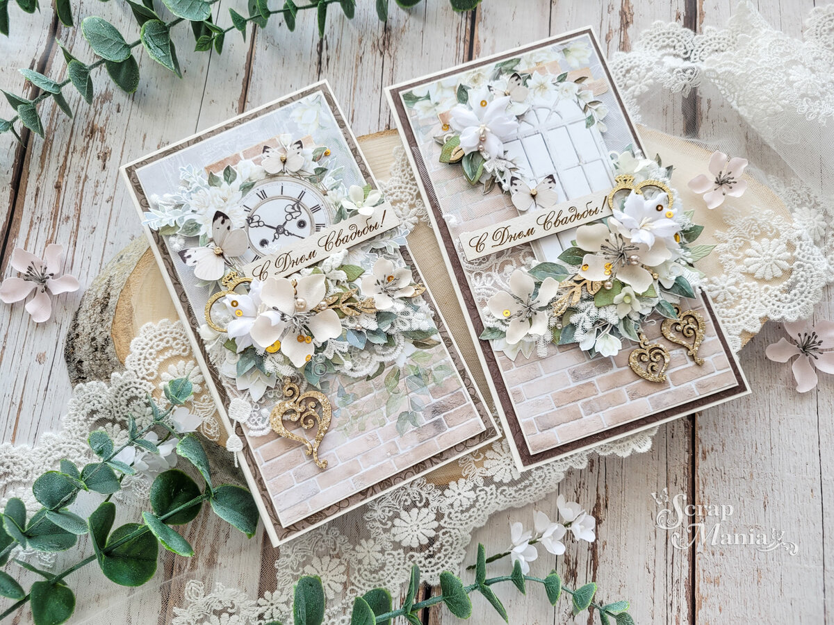Всем привет! С вами сегодня Elena Veres, и я рада приветствовать вас на третьем этапе совместного проекта "Весны прекрасные слова". На этом этапе мы посвящаем свои работы любящим сердцам, решившим соединить себя узами брака. Обязательными элементами являются цветы, высечки или вырезанные элементы и поздравительная надпись с Днем свадьбы - самым ярким и счастливым событием в жизни двух любящих сердец. Для того, чтобы передать атмосферу этого нежного момента и тихого счастья, нужна красивая и душевная коллекция. Поэтому я остановила свой выбор на коллекции "Улочки счастья": она прекрасно сочетается как со светлыми, нежными тканевыми цветами - первым обязательным элементом этапа, так и с ажурными буквами поздравительной надписи - вторым обязательным элементом. В коллекции много элементов для вырезания, которые являются нашим третьим обязательным условием. Я применила в работе вырезалки из скрап-карты "Улочки счастья. Ярлыки и теги", листа из набора 30×30 см "Улочки счастья. Картинки", л