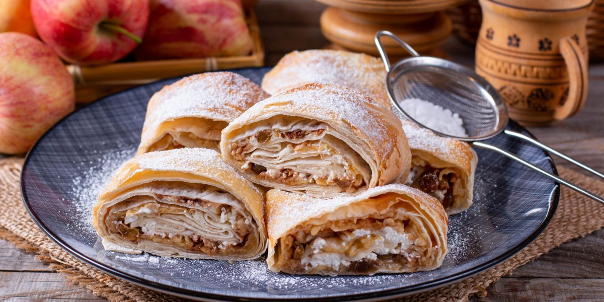 Штрудель - это традиционное австрийское блюдо, состоящее из тонкого теста, наполненного вкусной начинкой из яблок, изюма, орехов и специй. В этой статье я поделюсь рецептом приготовления классического австрийского штруделя с яблоками. Ингредиенты Для приготовления штруделя нам понадобятся следующие ингредиенты: Приготовление 1. Сначала мы разминаем тесто и делим его на две равные части. Затем мы раскатываем каждую часть в прямоугольник. На один прямоугольник теста мы намазываем растопленное сливочное масло и посыпаем его сахарной пудрой. На другой прямоугольник мы выкладываем нарезанные кубиками яблоки, изюм и цукаты. Мы также посыпаем этот слой корицей. 2. После этого мы складываем слои теста друг на друга, совмещая края, и закрепляем их вилкой. Мы украшаем штрудель разрезами в форме треугольников по краям. Затем мы выпекаем штрудель в духовке при температуре 200 градусов Цельсия около 30 минут до золотистого цвета. 3. Готовый штрудель мы посыпаем сахарной пудрой и подаем к столу. Ш