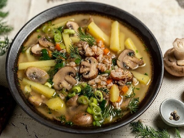 Грибной суп из шампиньонов, наверное, входит в тройку наших самых любимых блюд. Существует множество различных рецептов супа с гибами, в том числе, например, суп из свежих белых грибов или суп из сушеных грибов. В старину источником грибов был исключительно лес. Сейчас есть большой выбор тепличных грибов, таких как шампиньоны, вешенки или шиитаке. Считается, что к шампиньонам раньше относились с подозрением. Возможно, потому, что они росли в дикой природе, часто в местах, где выбрасывались пищевые отходы. Также считалось, что шампиньон не является лесным грибом, а потому не имеет души. Русские называли шампиньон «печуркой», потому что его белая круглая шляпка напоминала древний тип дровяной печи. Однако в некоторых регионах шампиньоны выращивали ещё до революции 1917 года. В частности, Ефим Грачев, живший в Ростовской области, одним из первых увидел в шампиньонах потенциал не только в плане гастрономии, но и в плане бизнеса. Он стал самым успешным садоводом и предпринимателем своего вр