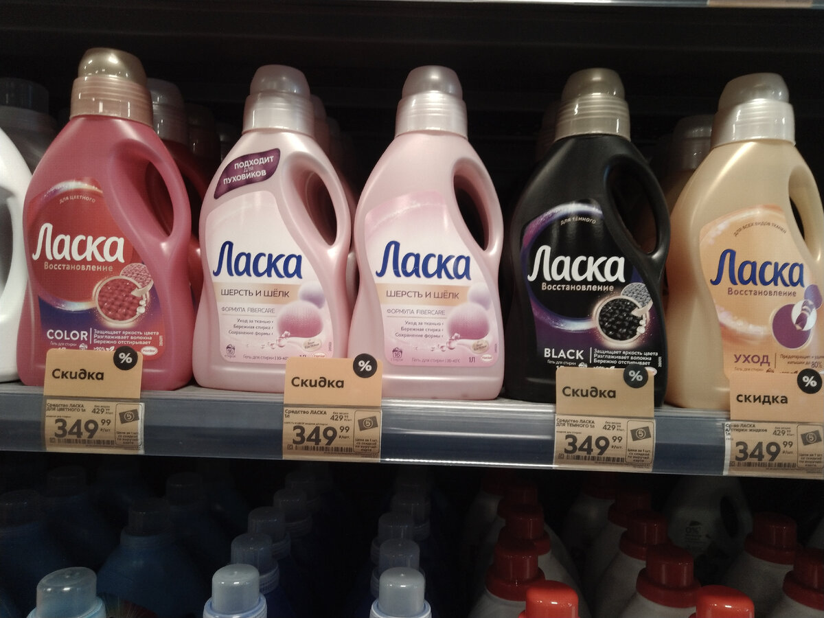 Добрый день всем! Сегодня нас снова заметает по - зимнему, и не до прогулок на свежем воздухе. Поэтому заглянем с вами в магазины "Пятёрочка" и "Улыбка радуги", там сейчас скидки на средства для стирки. Может, как раз пора пополнить запасы. "Пятёрочка". Гели для стирки. "Ласка" для цветного, для тёмного, для шерсти и шёлка 1 литр за 349,99. Bimax color 1300 гр. за 369,99. Tide Альпийская свежесть за 429,99, объём 1,235 л. Tide color с ароматом лаванды и берёзовой воды за 459,99, объём 1,235 л. Листайте галерею. Стиральные порошки. Losk горное озеро 2,7 кг. за 359,99. Bimax 100 пятен эффективное удаление, 3 кг за 419,99. Persil color deep clean 2,1 кг. за 389,99. Биолан color 2400 гр. за 279,99. ABC для белого и для цветного, 3 кг. за 299,99. Листайте галерею. Капсулы. Losk ароматерапия 12 штук за 329,99. Tide color, 10 штук за 329,99. Tide Альпийская свежесть, 15 штук за 459,99. Ariel для чёрного белья, 12 капсул за 499,99. Листайте галерею. "Улыбка радуги". Гели для стирки. "Ла