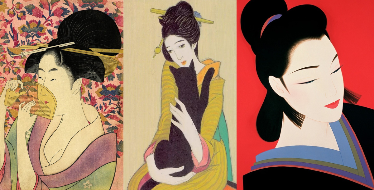 В японском искусстве существует отдельное понятие для изображений красивых женщин — бидзинга (美人画), что дословно можно перевести как «картины с красавицами». Художники с давних времён изображали прекрасных дам, и в этой статье мы рассмотрим историю этого жанра в Японии. Как люди разных эпох представляли себе красавиц? Предполагается, что сам термин «бидзинга» появился не так давно, лишь в период Мэйдзи (1868—1912 гг.). До этого изображения прекрасных девушек называли онна-э (女絵) или бидзин-э (美人絵). Идею создавать картины с изображением красивых людей японцы позаимствовали из Китая ещё в VIII веке. В то время в Китае были популярны образы прекрасных мужчин и женщин, стоящих под деревьями. Первое упоминание японского произведения подобного рода относится к ширме «Красавицы, наряженные в птичьи перья» в сокровищнице храма Тодай-дзи и изображению богини судьбы Китидзётэн в храме Якусидзи в Наре. Эти изображения представляют идеал красоты женщины в VIII веке, возникший под влиянием моды ки