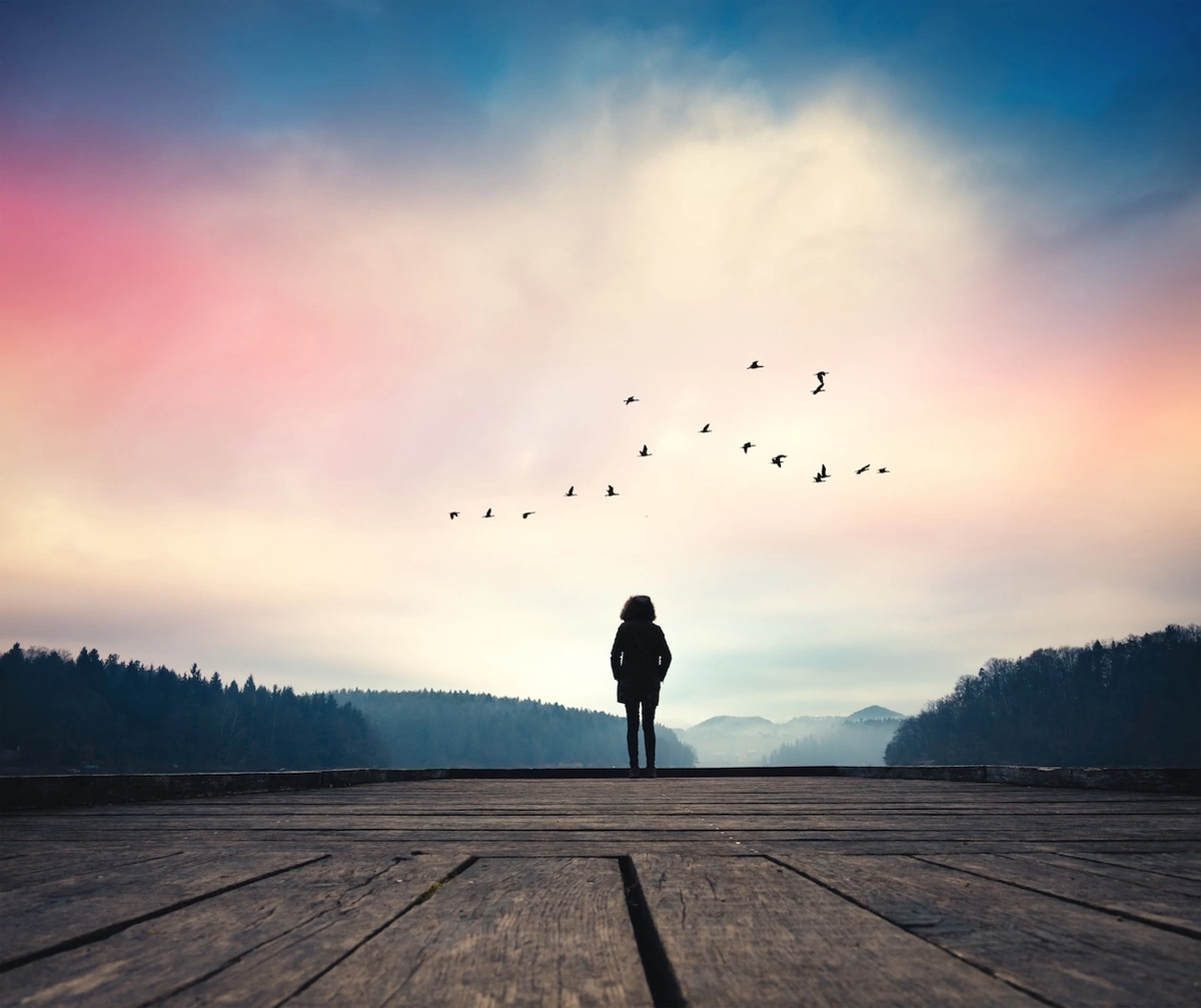 Теперь подумай вот о чем: если бы не было ничего, кроме тишины, то и ее для тебя тоже не было бы; ты бы никогда не узнал, что она есть. Тишина обретает бытие только при появлении звука. Подобно этому, если бы было только такое пространство, в котором нет никаких объектов, то для тебя его тоже не было бы. Представь себе, что ты — это точка сознания, свободно перемещающаяся в бесконечном пространстве, где нет ни звезд, ни галактик, только пустота. И представь, что пространство вдруг престало быть огромным; его вообще не стало бы. Не стало бы скорости, не стало бы перемещений отсюда туда. Для того чтобы расстояние и пространство вступили в свое бытие, требуется всего две точки отсчета. Пространство вступает в свое бытие в тот миг, когда Одно становится двумя и когда “два” становятся “десятью тысячами”, как Лао Цзы назвал проявленный мир, то есть пространство становится всё более и более обширным. Поэтому плотный мир и пространство появляются одновременно. Ничего не может существовать бе