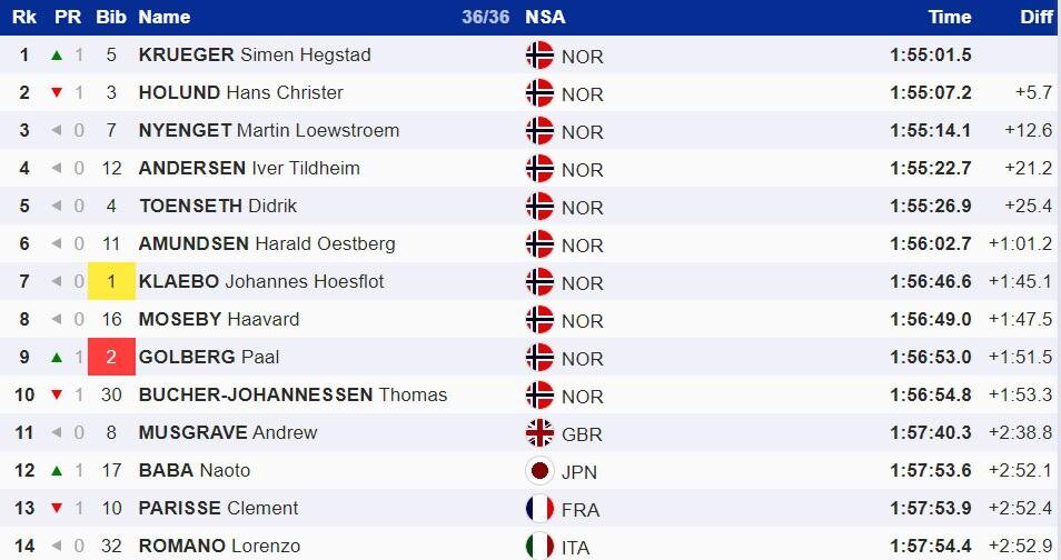 Норвежские лыжники заняли первые десять мест в гонке на этапе Кубка мира