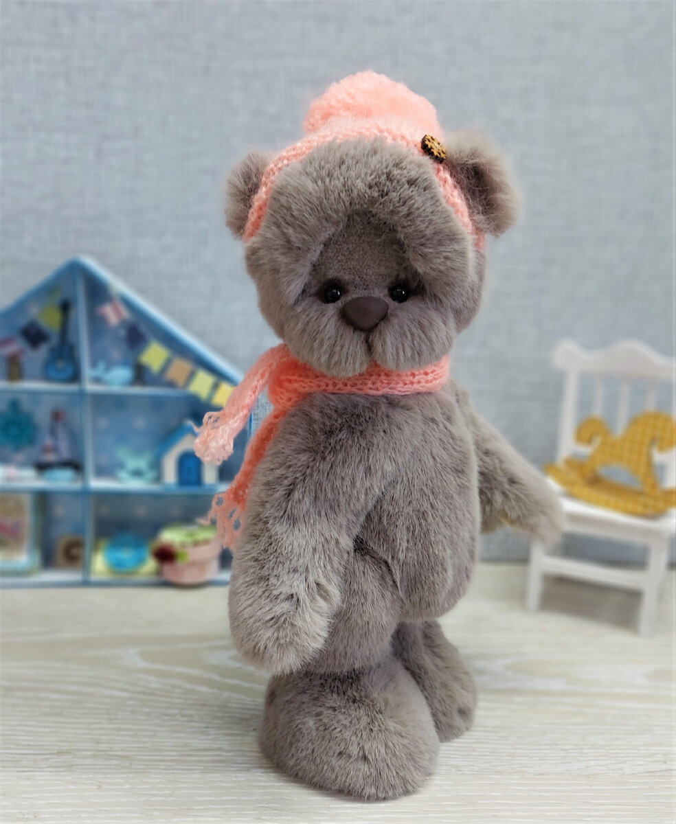 Ну не могла я назвать его по другому, а только - Георгий Петрович, посмотрите сами на это серьезное выражение мордочки, в эти строгие глазки, да еще и взгляд его меняется с поворотом головы)))))) Георгий Петрович стоит самостоятельно и довольно устойчиво, за счет плоской подошвы и утяжелению нижней части тела Сшит Петрович из немецкого меха - цвет какао, длина ворса 17 мм, в пяточках и ладошках стоит нежный велюр. Крепления лапок и головы 5-ти шплинтовое. Шапочку и шарфик я связала из мохера - персикового цвета. Пузико плотно наполнено стеклянным гранулятом и синтепухом. Рост у Георгия Петровича - 29 см, он может не только стоять , но и сидеть на попке))) Мишка пока полностью свободен! По вопросам приобретения Мишутки обращайтесь на эл.почту zhu8628@yandex.ru Все эти Мишутки и Зайки тоже ищут дом: Мишутка Любушка - немецкий мех, ручная работа. Мишутка Тимоша - ждет Вашей оценки. Немецкий мех, ручная работа! Мишутка Франтишек открывает новый 2023 год. Итальянский мех и полностью ручна