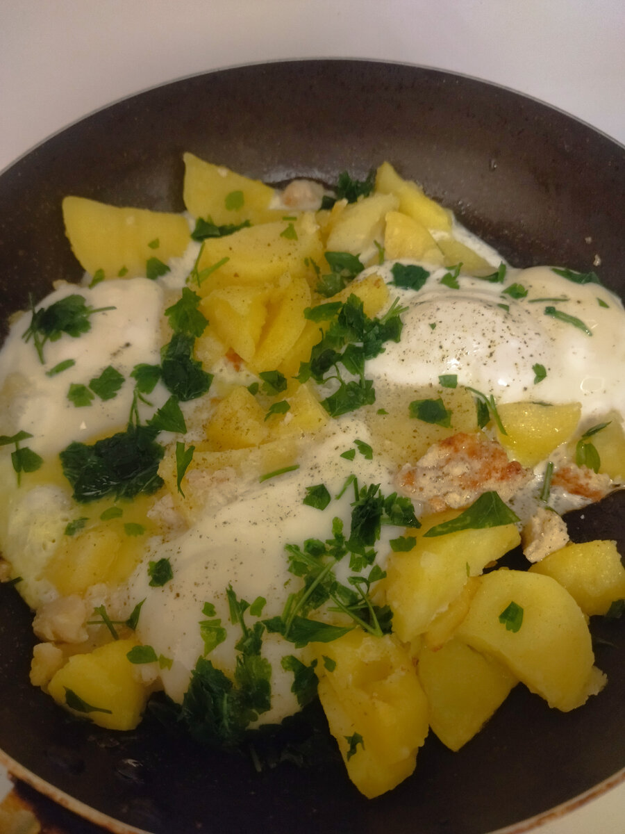 Вот почему, интересно, в выходные так не хочется подольше поспать? 🤔🙄 Встала в 6 и пошла на кухню завтрак готовить и кофе варить. Хотя кофе теперь варю не я, а кофеварка☕ На завтрак решила подобрать остатки отварной картошки, поджарила их слегка, залила яйцами и посыпала зеленью из морозилки. Сытно и вкусно. И остатки утилизированы. И волки сыты, и овцы целы, как говорится😄 Дети ели овсяную кашу с яблоком и пили чай с бутербродами На обед у них суп с яйцом А у нас с мужем суп из форели с грибами и сыром Потом все пили компот с пряниками. На ужин у маленькой баночное рыбно-овощное пюре, у старшей домашние пельмени со сметаной. Мы с мужем доели гречневую лапшу. Сделала сегодня заправку для салата - соевый соус, лимонный сок, горчица и чеснок. Не в большом восторге мы, но иногда можно. На завтра на утро испекла заливной пирог с капустой. Но мы не удержались 🙈 Попробовали уже сейчас😋 Свекровь передала квашеную капусту и сало. Придется есть🤷♀️😄 После ужина вышла в магазин. Вот ведь