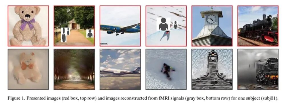 Окей, раз уж мы разобрались подробно, что удивительного умеют делать текстовые нейросети – то чем нас могут удивить модели, которые работают с изображениями? Хм-м, даже не знаю – как насчет чтения мыслей? Идея здесь такая: ученые уже раньше пробовали засовывать людей головой в fMRI-сканеры, показывать им всякое разное на экране – а параллельно записывать со сканера данные о том, какие изменения происходят у них в мозгу. Натренированную на таком наборе данных нейросетку уже давно научили генерировать из данных со сканера очень грубую, очень мутно-расплывчатую версию того, что могли бы видеть люди в этот момент – выглядело это примерно так же, как видел бы пьяный человек со зрением –10 без очков (ну то есть – плоховато, какие-то мутные очертания в основном). А тут, значит, выяснили, что если всё это заполировать сверху прогоном через обычную нейросетку Stable Diffusion (ну, на самом деле, через еще одну промежуточную модель, которая генерирует специальный запрос уже к Stable Diffusion) –