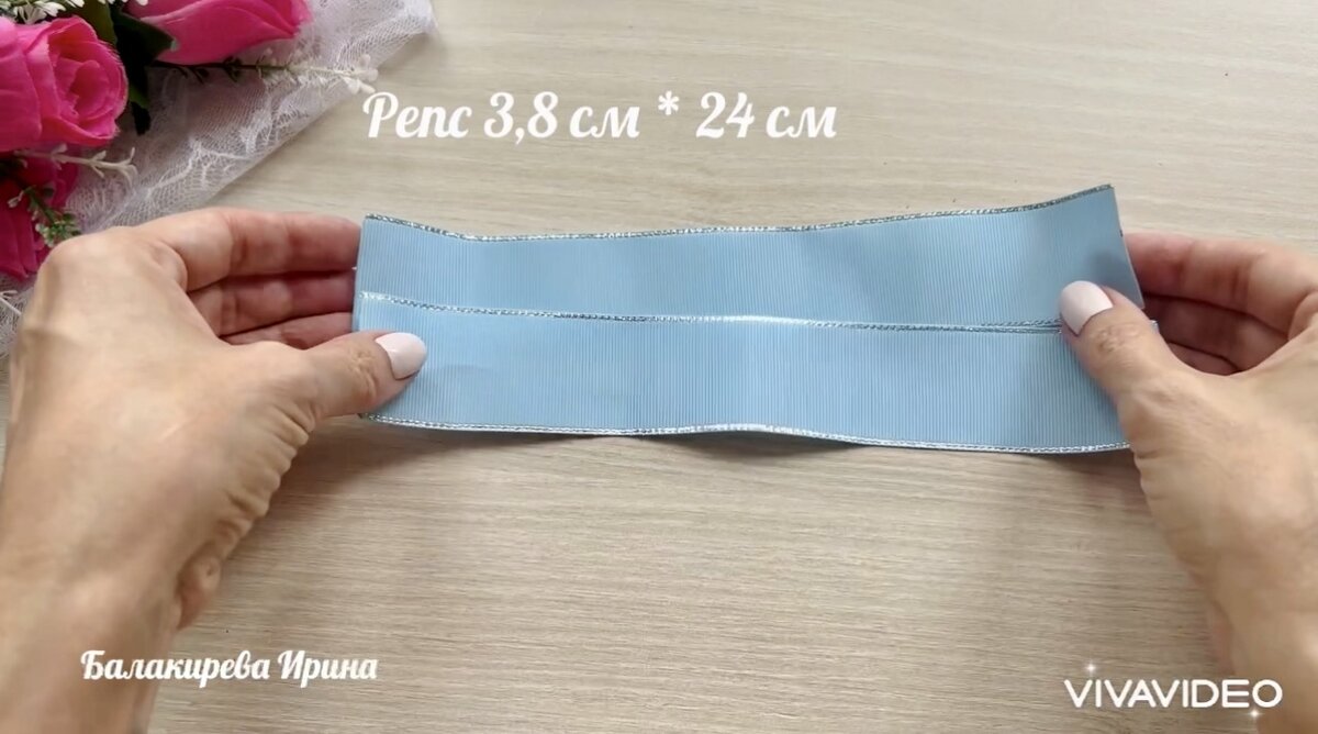 🌟Нам понадобится лента , шириной 3,8 см - два отрезка , длина которых - 24 см . Я использовала репсовую ленту, но можно любую , какая есть в наличии. ⬇️