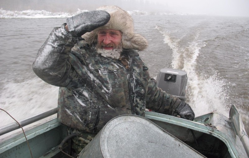 При этом правило неспешности у него как никогда в силе. Перед пешим походом в дальние избушки может три дня готовиться, копаться вокруг избушки и внутри нее, а потом соберется и прет пять дней с грузом и работой, ночует в палатке, в то время как молодой и спортивный оператор «с Москвы» еле за ним поспевает по снегу, который подваливает с угрожающей силой.