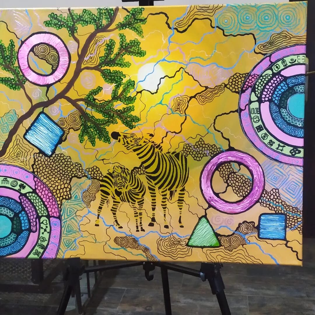 "Символы Африки в нейрографической картины с зебрами: погружение в культурное наследие через искусство".