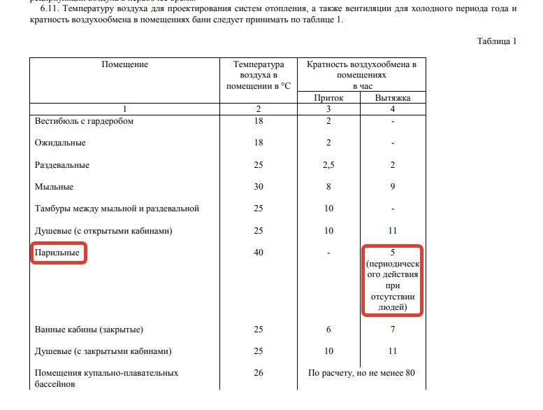 Периодическую смену воздуха подтверждают и методические рекомендации по проектированию бань и банно-оздоровительных комплексов 1993 года, где сообщаетс