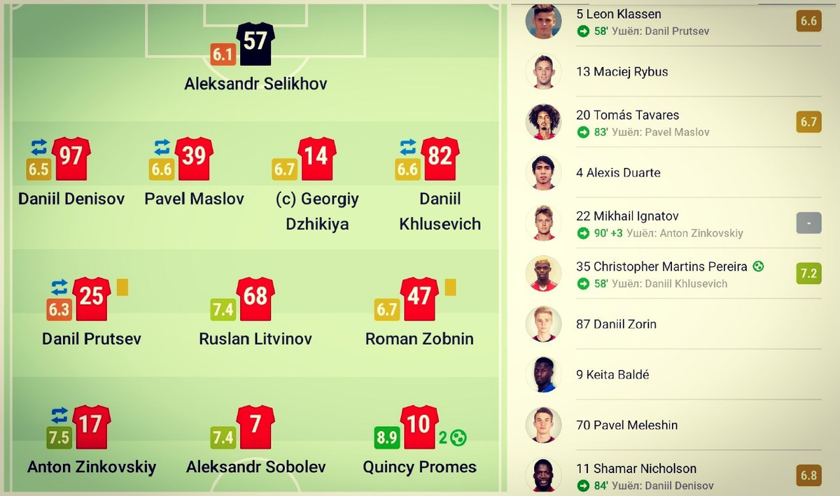 Всем еще раз физкульт-привет! Статистическая платформа СофаСкор, оценила игру футболистов московского Спартака: Не соглашусь с ними в оценке Селихова: с пенальти, конечно косяк, когда тебе забивают по центру - падать на угад, по-моему так себе тактика, но самой низкой оценки в команде он явно не заслужил. А еще есть продвинутая статистика матча 19-го тура РПЛ «Спартак» — «Факел» от аналитического проекта Футбол в цифрах: