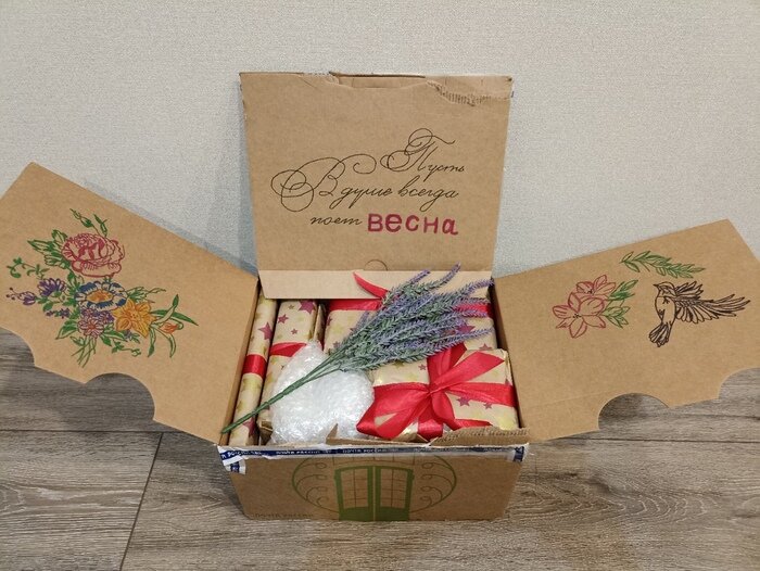Сразу нас встречает прекрасный рисунок на коробке, а потом веточка лаванды. Уже создается особое впечатление. А дальше еще ярче) Каждая коробочка упакована с душой и заботой, снегурочка постаралась на славу, проявила выдумку и оригинальность.