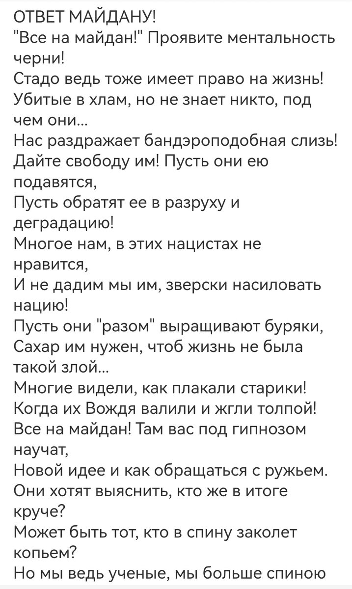 Тема майдана в Грузии ещё теплится, а я в старых заметках в соцсети как раз за сегодняшнее число нашла стихотворение сына. Написано оно было в декабре 2013, просто именно у себя я опубликовала его 12 марта. Понятно, что это не литературный шедевр, но сын как мог, выразил свои мысли. Что ещё хочу сказать - а не дам гадить бульонным кубикам с канала ботов и главному "галлусу" под этой статьей - накося выкуси🖕😁 Можешь клювом, "голос" постучать или гребнем.... Если кто из подписчиков захочет чего - либо сказать по этому поводу - можно высказаться на канале о быте и ремонте. Мне любопытно посмотреть, как ужом на сковородке будут прыгать порядочные и незапятнанные, чтобы найти язык вражды в тех статьях. 😁 Ну, а стая "галлусов", может укусить себя за пятую точку😂 А чтоб сильно не плакали, ваш гимн на бис. И не благодарите! Я альтруист. Пошла я танцевать 💃💃💃💃💃 Кстати, галлус, говорят, чтобы ущемленный нерв не болел, нужно нагнуться и в такой позе постоять. Мой новый канал, где п